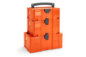 Box for safe transport and storage of Husqvarna backpack batteries. batteries. chargers and other accessories. The box is compatible with the Systainer-Box-System. Outside dimensions 210x396x296mm.