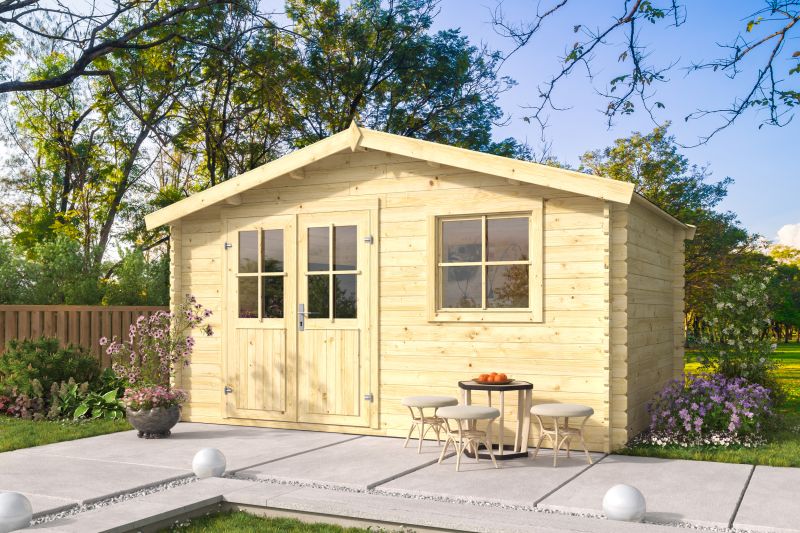 De blokhut is uitgevoerd in onbehandeld vurenhout, waardoor je de vrijheid hebt om het hout zelf af te werken met beits, olie of verf. Zo kun je de uitstraling volledig aanpassen aan je eigen tuin en tegelijkertijd het hout extra beschermen tegen weersinvloeden.