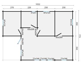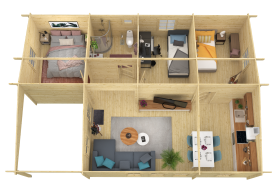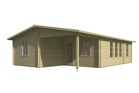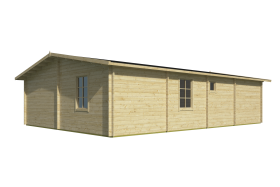 De geschaafde en gedroogde houten delen zorgen voor een nette afwerking en dragen bij aan een stabiele en duurzame constructie met beperkte werking van het materiaal. Door de stevige wandopbouw is dit type blokhut goed bestand tegen wisselende weersomstandigheden en langdurig buitengebruik.