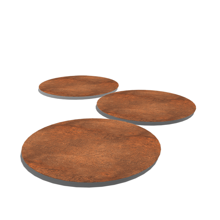 Deze staptegels, ook wel stapstenen genoemd, zijn gemaakt van cortenstaal die in eigen productie zijn gemaakt. Ze zijn eigenlijk overal in de tuin te plaatsen; in het grind, het gazon, tussen de planten of op een andere plek in de tuin. De staptegels worden neergelegd in de aarde of op het gazon. De grasmaaier kan er zo overheen.
