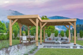 De robuuste constructie bestaat uit stevige staanders en balken, wat zorgt voor stabiliteit en een solide basis. Het platte dak geeft het geheel een moderne en strakke uitstraling en sluit goed aan bij diverse tuinstijlen. Daarnaast is het dak geschikt voor verschillende soorten dakbedekking, afhankelijk van de gewenste afwerking en uitstraling.