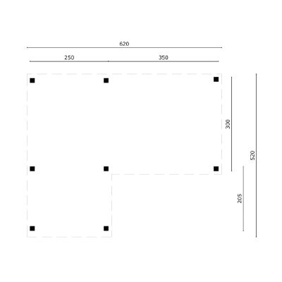 Met een oppervlakte van ruim 32 m² biedt deze overkapping volop ruimte voor een grote loungeset, eettafel of een combinatie van beide. De L-vormige indeling maakt het mogelijk om verschillende zones te creëren, waardoor je de ruimte optimaal kunt benutten voor bijvoorbeeld eten, relaxen of opbergen.