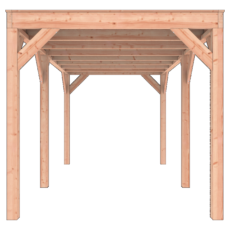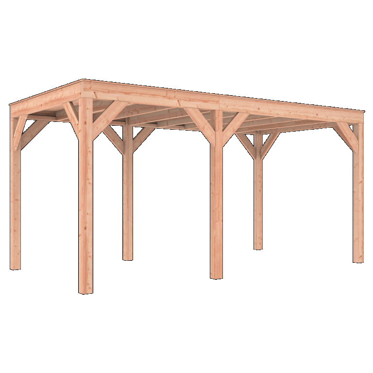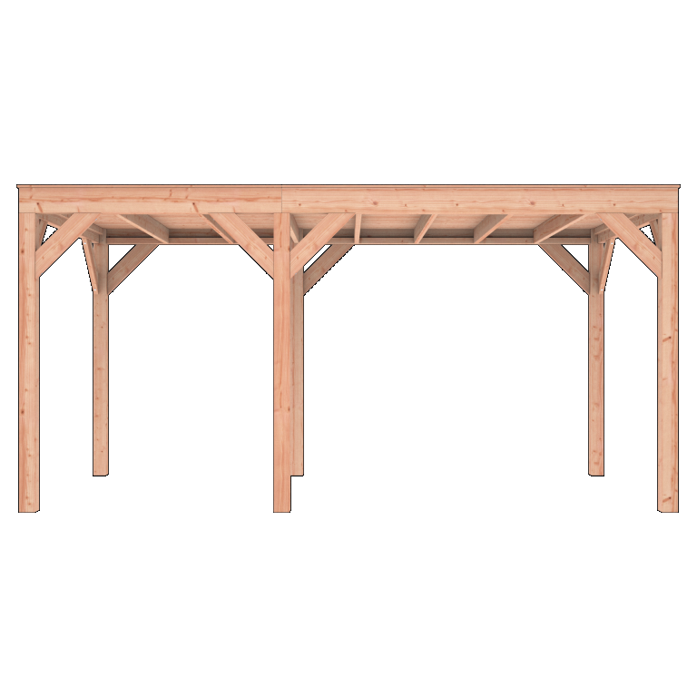 De Douglas Overkapping A-Sym is vervaardigd uit duurzaam en sterk Douglas hout. Dit hout staat bekend om zijn lange levensduur en natuurlijke weerstand tegen weersinvloeden. De warme kleur en robuuste uitstraling maken deze overkapping tot een stijlvolle toevoeging aan iedere buitenruimte.