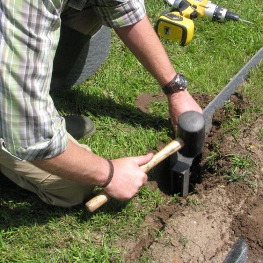 - Klop de Ecopic paaltjes om de 50cm verticaal in de grond. Breng hierbij de bovenzijde steeds op dezelfde hoogte.