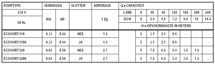 De Leader ECOVORT 510A is een hoogwaardig glasvezelversterkte kunststof dompelpomp en heeft een keramische asbus.