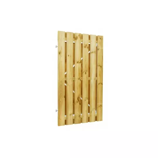 Duurzaam en robuust: Het grenenhout is geschaafd en groen geïmpregneerd, waardoor de deur bestand is tegen vocht en rot, ideaal voor buitentoepassingen zoals tuinhuisjes of schuren.