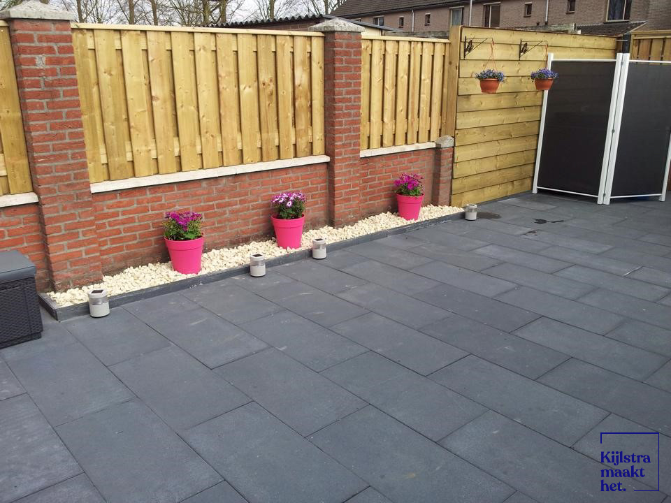 Het formaat creëert een rustige en moderne sfeer in uw tuin. Wilt u meer diepte in uw tuin, dan kunt u deze tegel daar uitstekend voor gebruiken.
