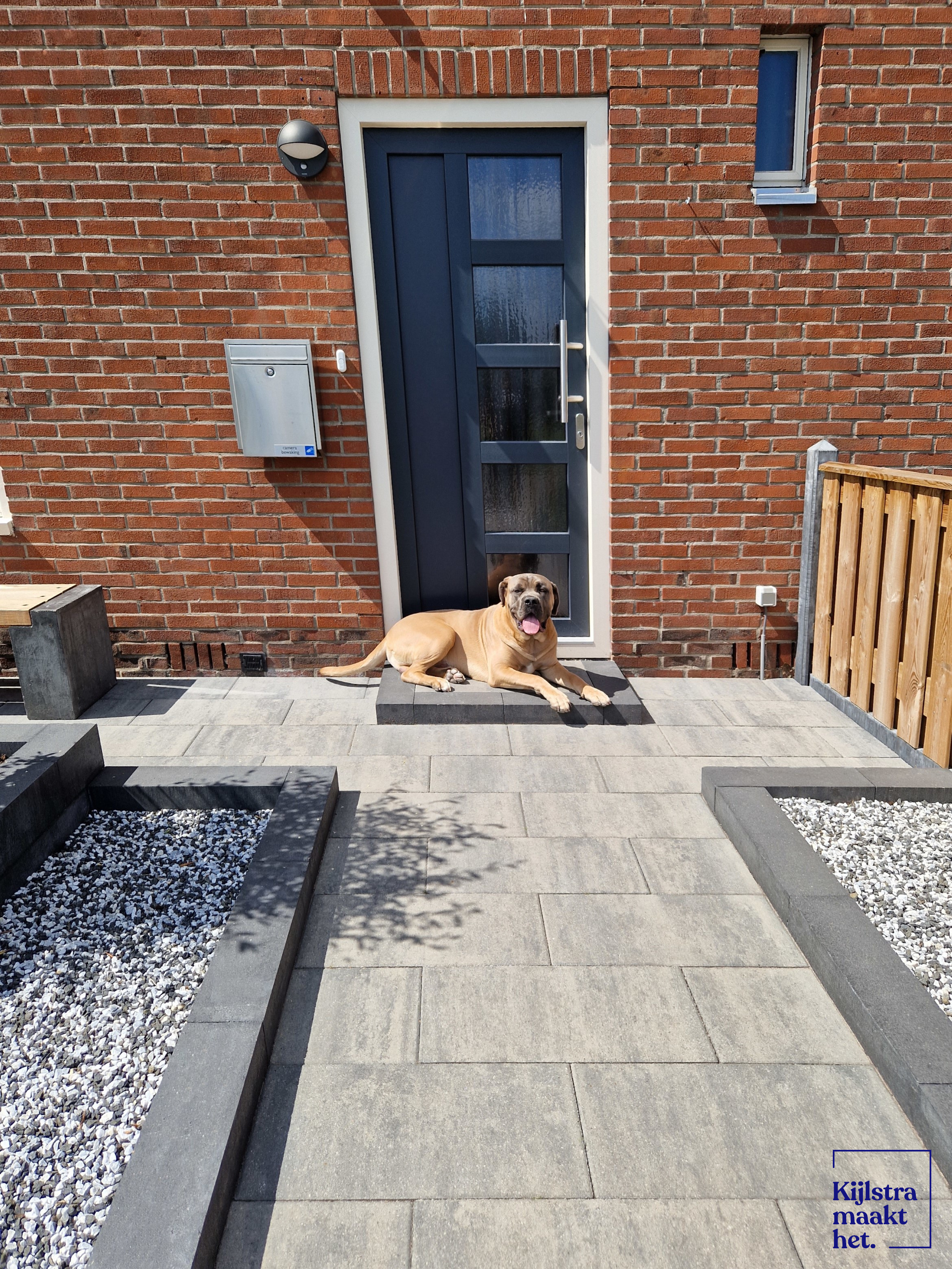 Het formaat creëert een rustige en moderne sfeer in uw tuin. Wilt u meer diepte in uw tuin, dan kunt u deze tegel daar uitstekend voor gebruiken.