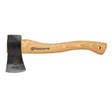 Een kleine bijl voor vuurhout en tuinwerk. Wordt geleverd met een randafdekking in leer. De kop is bevestigd aan het handvat met behulp van zowel een houten als een stalen wig om de bevestiging te beveiligen.