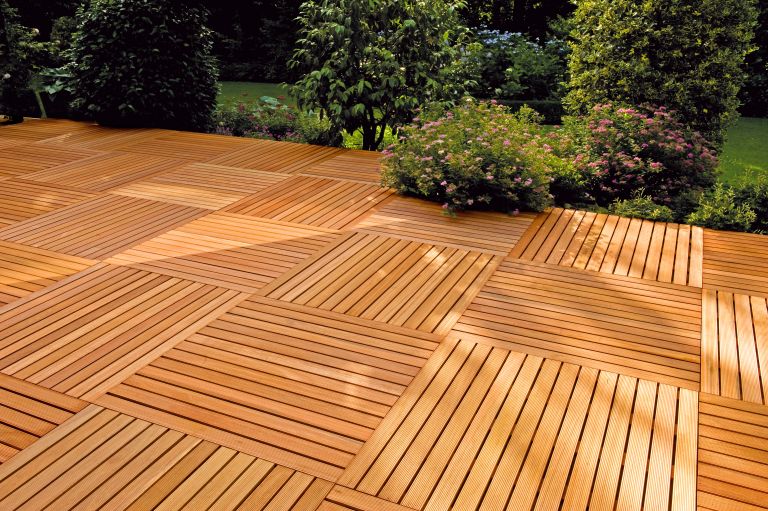 Hardhout heeft een warme, natuurlijke uitstraling en een luxe uitstraling die direct bijdraagt aan de sfeer van een tuin, balkon of interieur. De grote formaattegels van 100 x 100 cm creëren een strakke, moderne look. -