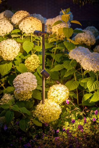 De Juno Tube (alleen de lamp) is ontworpen voor flexibele verlichtingstoepassingen. Bevestig de buis (artikel 215A) aan een schutting en richt de spots naar beneden op beplanting, of plaats hem tussen struiken met een grondspies voor een subtiele uplight. Ook onder een pergola of veranda biedt de Juno Tube een stijlvolle oplossing voor sfeervolle verlichting.