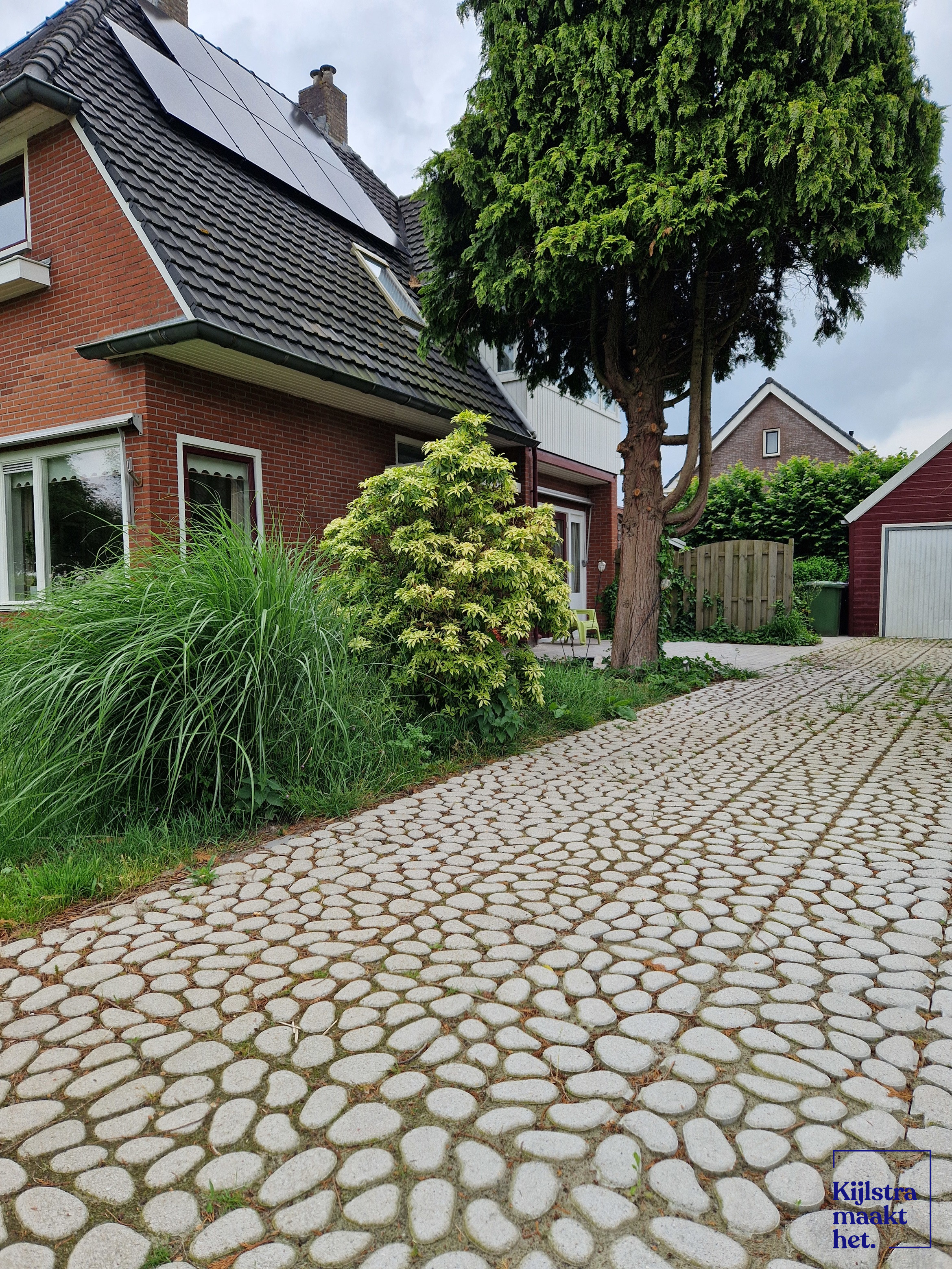 Hierdoor blijft dit kostbare water behouden voor uw tuin. Naast deze duurzame eigenschap, geeft deze steen door het keitjesprofiel een heel natuurlijke en nostalgische uitstraling aan uw pad of oprit. De ruimte tussen de keitjes moeten opgevuld worden met gras of split.