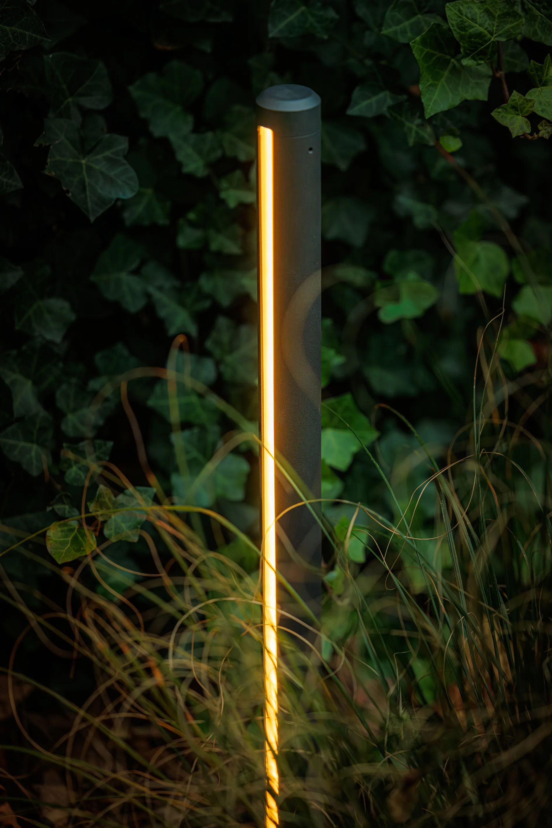 Deze strak vormgegeven lamp van 60 cm hoog is voorzien van een verticale ledstrip die een egaal lichtbeeld geeft. Bovendien is de lichtsterkte zelf te bepalen door deze handmatig op 1 van de 6 dimstanden te zetten. De verticale lichtbron zorgt voor een eigentijds beeld dat ideaal is voor het verlichten van opritten, tuinpaden en hagen. Het armatuur is eenvoudig te plaatsen met behulp van de meegeleverde spies.