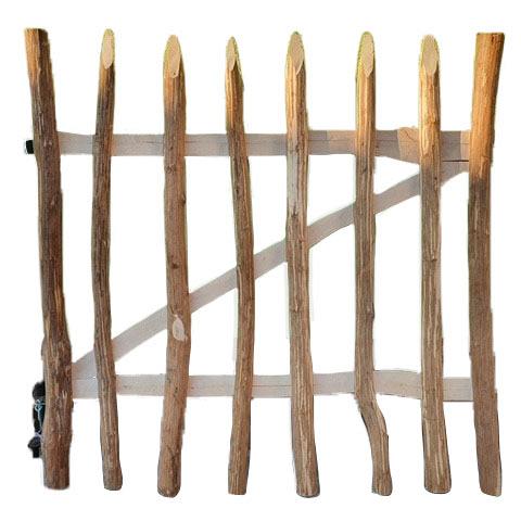 Weersgevoelig: Hoewel hazelaar duurzaam is, kan het poortje bij extreme weersomstandigheden na verloop van tijd wat kromtrekken of verkleuren.
