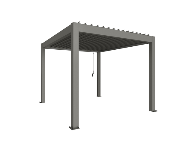 Het frame van deze pergola is gemaakt van aluminium en de daklamellen zijn van geïsoleerd, verzinkt plaatstaal.
