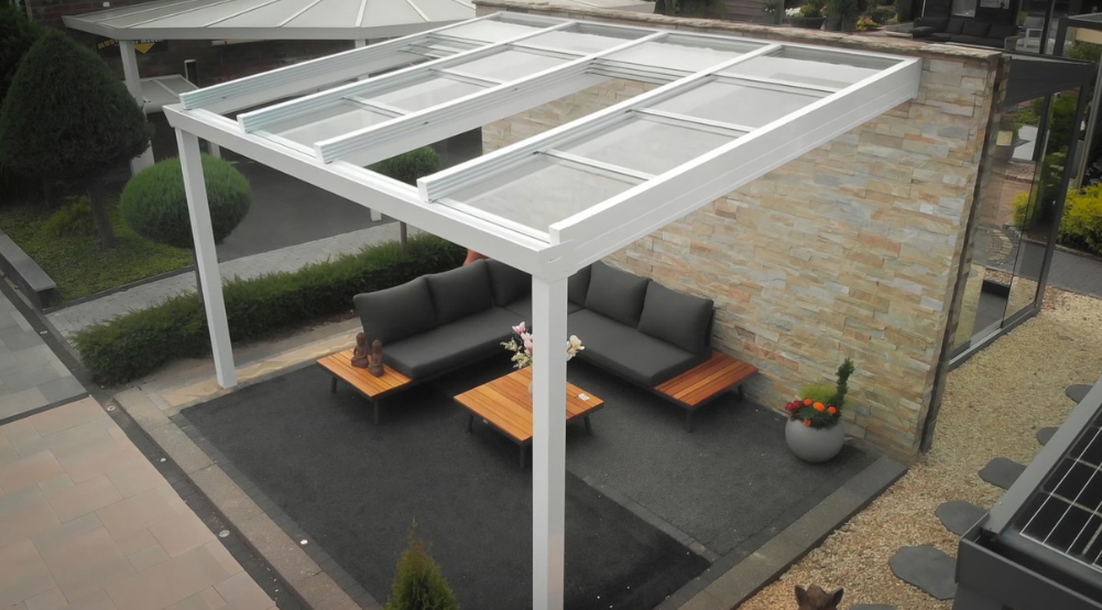 Met het gepatenteerde schuifdak van Gardendreams gaat er letterlijk een wereld voor u open! Bij warm weer schuift u het dak open, zodat de warmte kan ontsnappen. Barbecueën onder uw veranda, genieten van de zon of frisse lucht en droog zitten bij regen; uw veranda wordt nog functioneler en flexibeler met het schuifdak van Gardendreams. De Gardendreams veranda is vervaardigd uit hoogwaardig aluminium, dit aluminium is duurzaam gecoat waardoor deze veranda jaren mee zal gaan. De veranda heeft door zijn strakke ontwerp en afwerking een moderne en luxe uitstraling. De staanders van de veranda zijn 11 x 11 cm en bevatten een geïntegreerde hemelwaterafvoer waardoor deze mooi is weggewerkt.