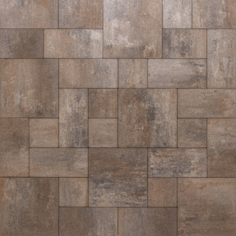 Hoogwaardige sierbestrating in diverse diktes en formaten, voorzien van een strakke geborstelde soft touch deklaag zonder facet, met afstandhouders, gehydrofobeerd en geïmpregneerd. Het oppervlak van de steen is met roterende borstels bewerkt waardoor de kleur versterkt wordt en het oppervlak satijnzacht aanvoelt
