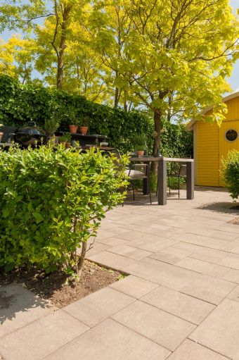 Grootformaat tegel: 100x100 cm zorgt voor een strak en ruimtelijk terras.