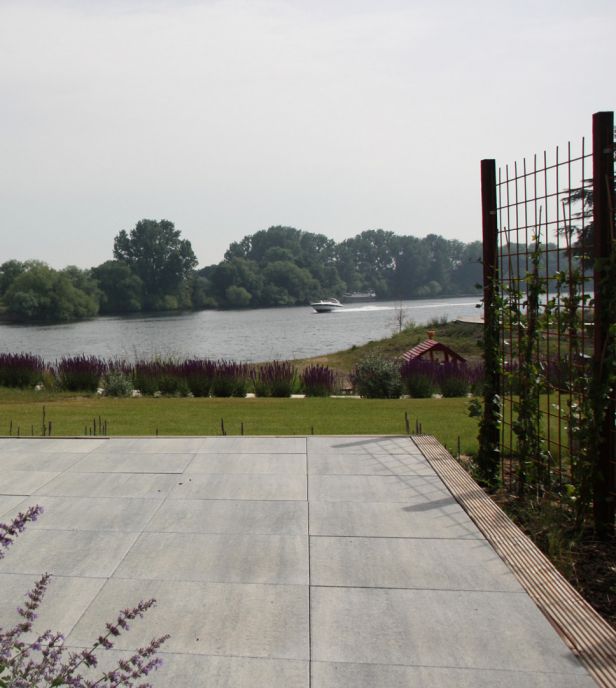 Royaal formaat: 60x60 cm tegels zorgen voor een strak en ruimtelijk terras.