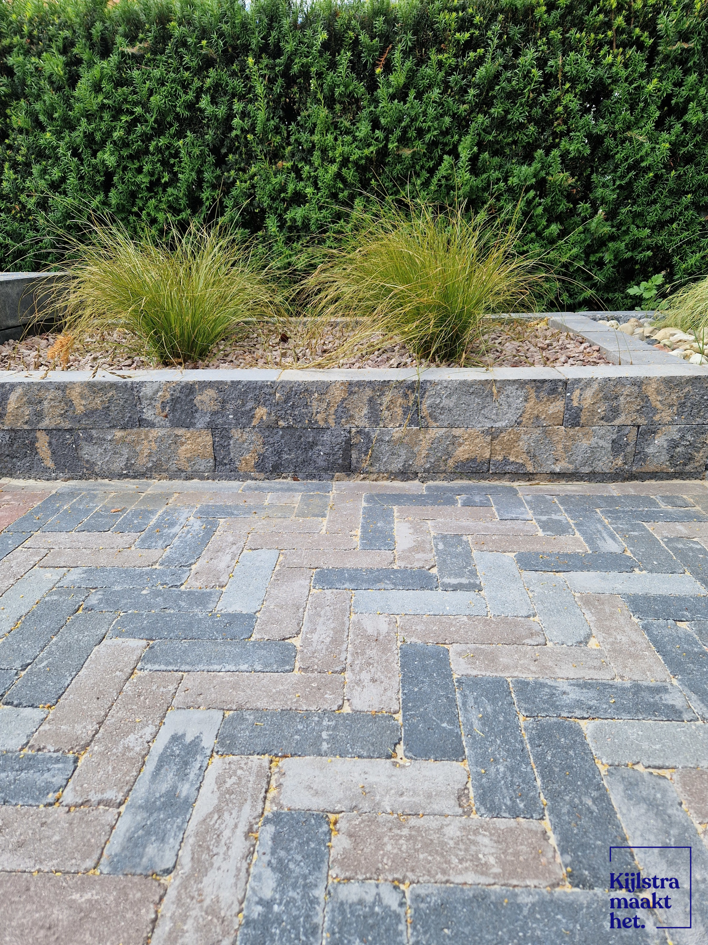 Dit type stapelblok geeft uw tuin een eigen sfeer. De natuurlijke grondstoffen zijn zichtbaar aan de gesplitste kant van het blok. Hierdoor heeft het een natuurlijke uitstraling en komen de kleuren goed tot hun recht.