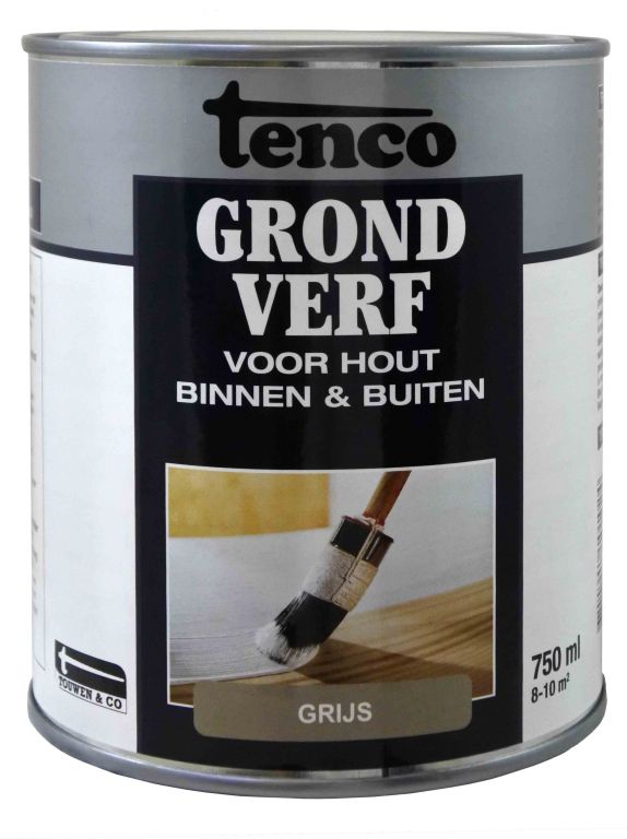 Tenco Grondverf waterbasis is een sneldrogende grondverf en is geurarm. Deze grondverf voor binnen en buiten biedt een uitstekende hechtlaag en bescherming voor al het houtwerk. Droogt snel, is goed dekkend en heeft een prima vloeiing. Tenco Grondverf op waterbasis wordt gebruikt als eerste laag voor nieuw hout en als grondlaag over bestaand schilderwerk. Universeel overschilderbaar met een dekkende verf op terpentine- of waterbasis. Tenco Grondverf wit is toepasbaar voor lichte kleuren aflak, bijvoorbeeld wit en geel. De grijze grondverf voor donkere kleuren aflak, zoals donkergroen en zwart.