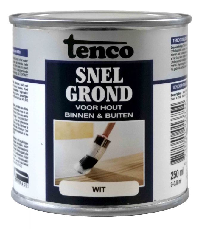 Tenco Snelgrond is een zeer sneldrogende grondverf op terpentinebasis voor onbehandeld hout en over oude verflagen. Tenco Snelgrond is geschikt voor binnen en buiten. Tenco Snelgrond biedt een uitstekend hechtende ondergrond welke al na 2 uur kan worden overgeschilderd met een afwerklaag. Hierdoor kunnen er meerdere werkzaamheden op één dag uitgevoerd worden.