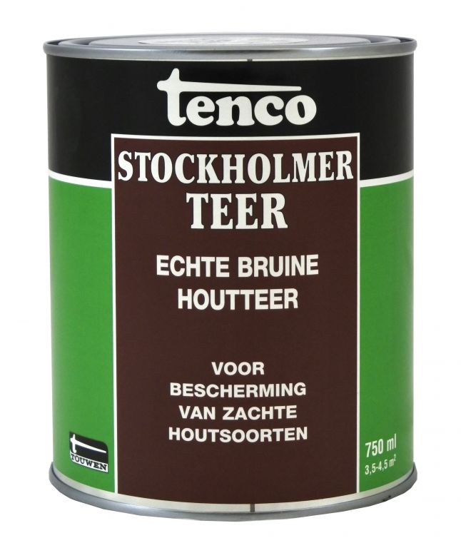 Tenco Stockholmer teer is een zuivere Scandinavische houtteer gemaakt uit vurenhout. Echte zuivere houtteer wordt al honderden jaren gebruikt om houten huizen, boten, steigers en alledaagse items te beschermen en te conserveren. Zuivere houtteer heeft licht antiseptische eigenschappen en beschermt daardoor het hout. Tenco Stockholmer teer kan ook gebruikt worden op paardenhoeven. Een oud recept is 1 deel stockholmer teer, 1 deel natuur terpentijn en 1 deel gekookte of rauwe lijnolie om zo een harpuis te maken welke hout beschermt tegen bijvoorbeeld inwateren.