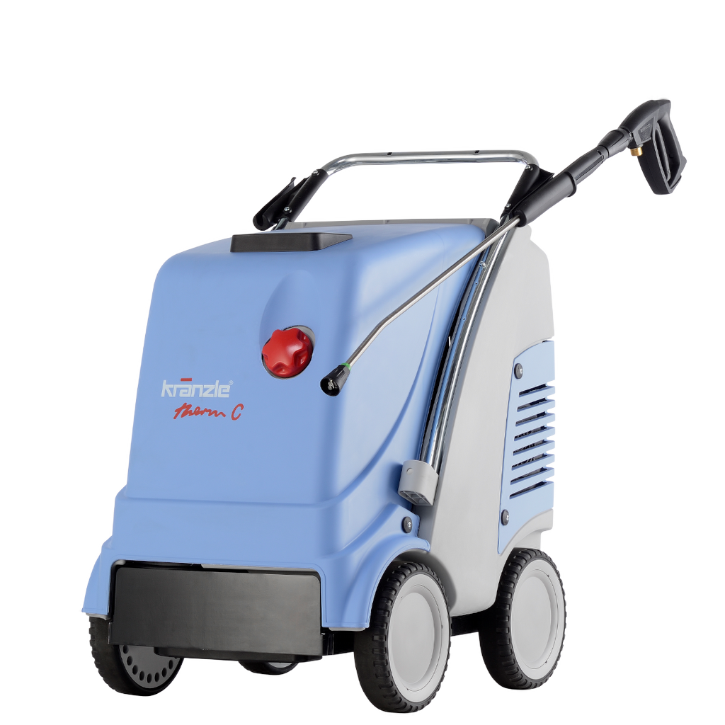 Sommige bacteriën en virussen, veroorzaakt door vet of olie bijvoorbeeld, zijn moeilijk te verwijderen. Maar het is gemakkelijker met warm water. Hier komen de Kränzle warm water hogedrukreinigers in het spel. Hun hoge watertemperaturen tot 140°C in de stoomfase verhogen de reinigingskracht en hebben ook een desinfecterende werking.