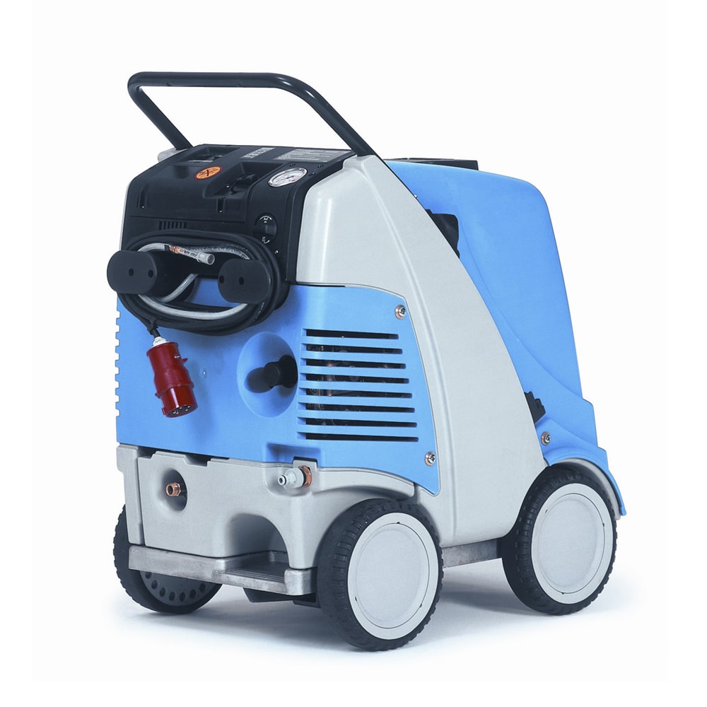 Professionele compacte mobiele warmwater hogedrukreiniger en vol rubberen wielen met grote diameter voor elk terrein. Levert tot 80°C vol vermogen, damptemperatuur max. 140°C. Met diesel verwarmd, hoog rendement door extra lang spiraal. Duurzame machine met 1.400 toeren pomp. Geschikt voor langdurig en industrieel gebruik.
