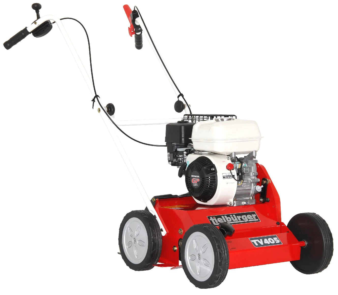 - Nu is de Tielburger verticuteermachine TV 405 aan zet. Hij snijdt met zijn geharde messen het horizontaal groeiende onkruid, kamt het mos en belucht de grasmat. Mest en andere voedingsstoffeen kunnen de wortels weer bereiken. De wortels krijgen wee zuurstof en het gazon wordt mooi groen.