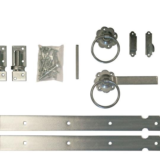 Traditioneel klinkstel met hengen en duimen, t.b.v. houten deuren en hekpoorten.