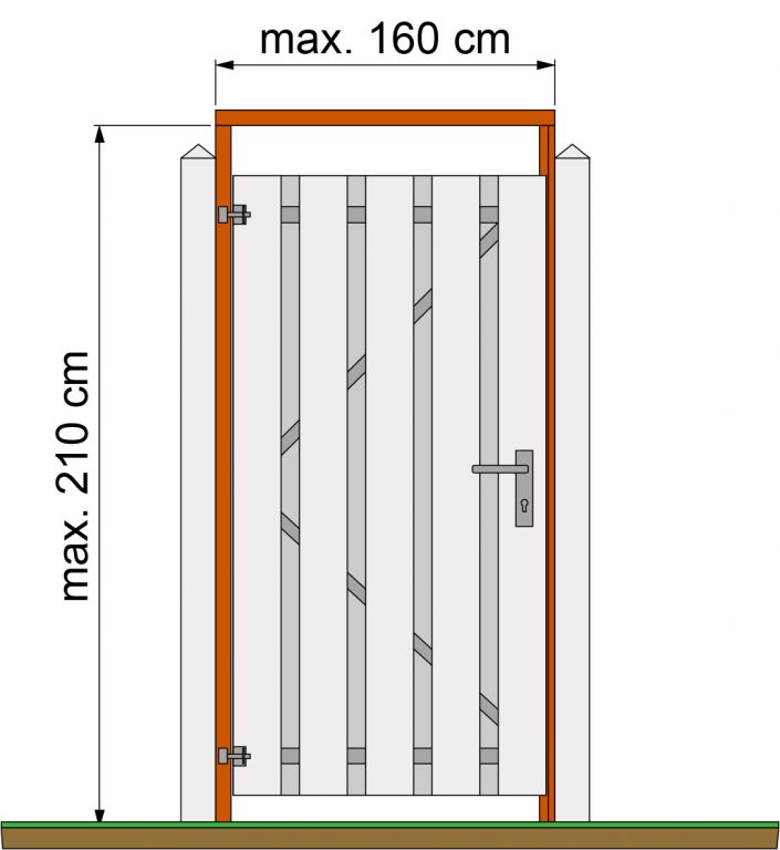 Universeel tuindeurkozijn. Maximale breedte 160 cm. Set bestaat uit: 3 regels, waarvan 1 verticale regel met aanslaglat is uitgevoerd. Inclusief bevestigingsmaterialen en handleiding.