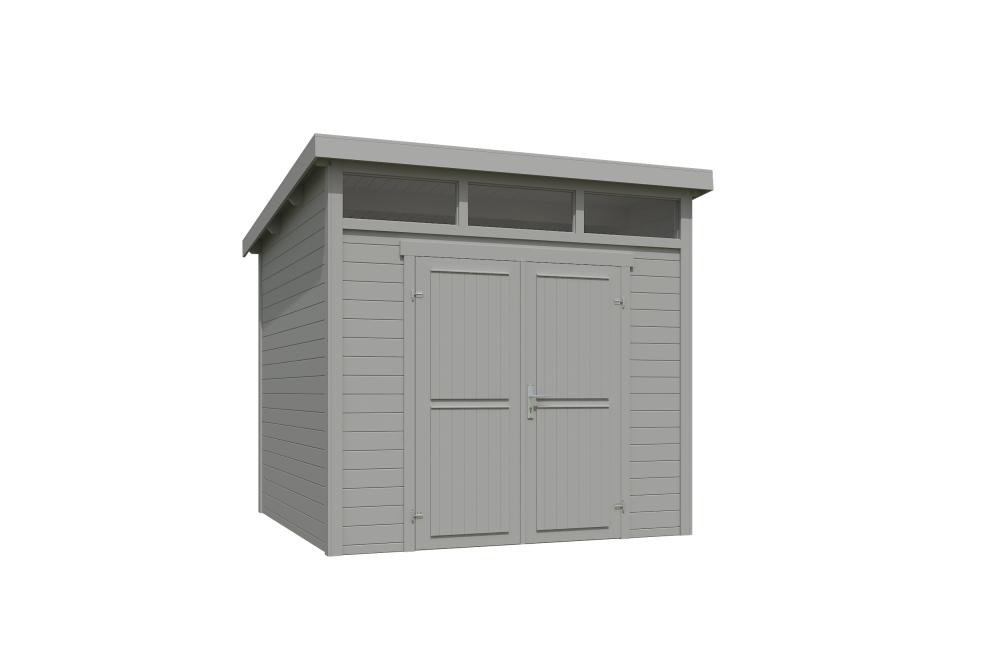 Tuinhuis Kibo 3 250x250 cm Platinumgrey is een compacte en stijlvolle oplossing voor iedereen die extra opbergruimte of een knusse plek in de tuin wil creëren. Dankzij het moderne ontwerp en de tijdloze kleur platinumgrey past dit tuinhuis perfect in zowel strakke als klassieke tuinen. Met zijn praktische afmetingen van 250x250 cm biedt dit model een ideale balans tussen ruimtebesparing en functionaliteit.