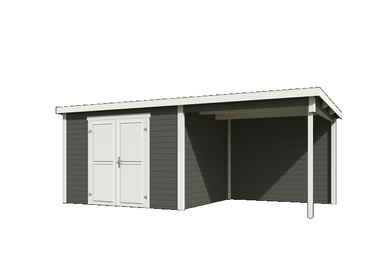 Tuinhuis Kjeld 550x250 cm Greengrey-wit noordeuropees vuren biedt een perfecte balans tussen ruimte, kwaliteit en design. Of je nu extra opslagruimte nodig hebt of een stijlvolle uitbreiding van je leefomgeving zoekt, dit tuinhuis vormt een waardevolle en duurzame toevoeging aan iedere tuin.