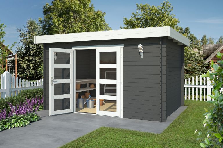 Tuinhuis Mikkel 380x275 cm Carbongrey-Wit noordeuropees vuren