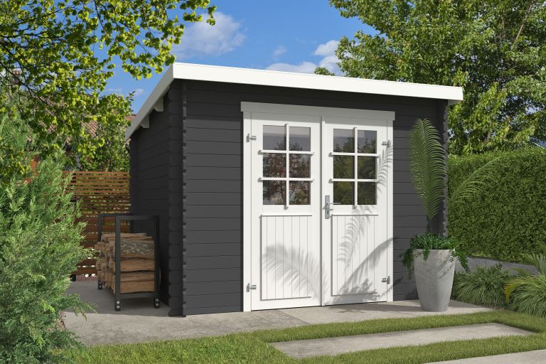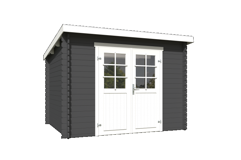 Tuinhuis Nadia 275x230 cm Carbongrey-Wit noordeuropees vuren is een compact en stijlvol tuinhuis dat zowel praktisch als modern is. Met een afmeting van 275 bij 230 cm biedt dit model voldoende ruimte voor het opbergen van tuinmeubelen, gereedschap of fietsen, terwijl het weinig ruimte in de tuin inneemt. De combinatie van carbongrey met witte accenten zorgt voor een frisse en eigentijdse uitstraling die in vrijwel iedere tuin past.