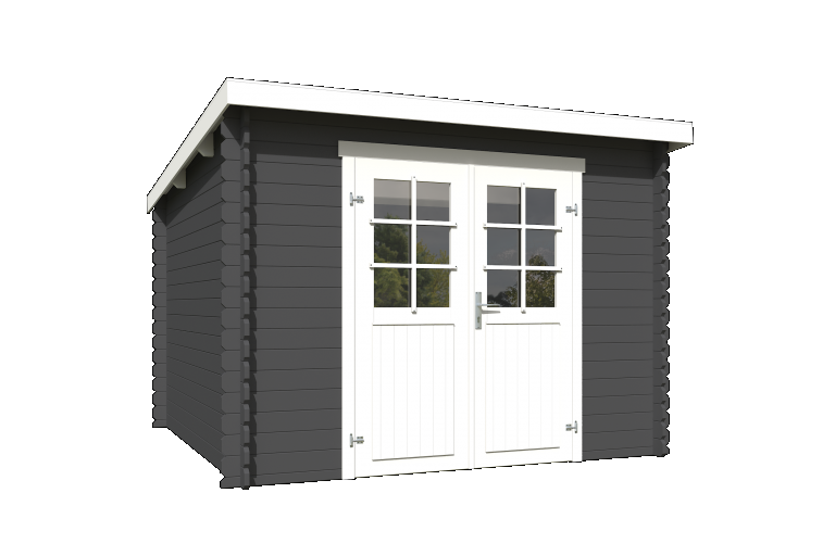 Tuinhuis Nadia 275x275 cm Carbongrey-Wit noordeuropees vuren is een ruim en modern tuinhuis dat functionaliteit en stijl perfect combineert. Met een afmeting van 275 bij 275 cm biedt dit model voldoende ruimte voor het opbergen van tuinmeubelen, gereedschap, fietsen of seizoensartikelen, terwijl het ook uitstekend kan dienen als hobbyruimte, werkplek of compacte buitenkamer. De combinatie van carbongrey met witte accenten geeft het tuinhuis een eigentijdse en frisse uitstraling die in iedere tuin past.