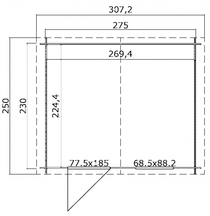 Met een praktische binnenruimte van circa 6,4 m² is Tuinhuis Nina 275x230 cm ideaal voor het overzichtelijk opbergen van tuinbenodigdheden en seizoensartikelen. Het tuinhuis kan daarnaast ook dienen als compacte werk- of hobbyruimte. De efficiënte indeling maakt het eenvoudig om de ruimte optimaal te benutten, zelfs in kleinere tuinen.