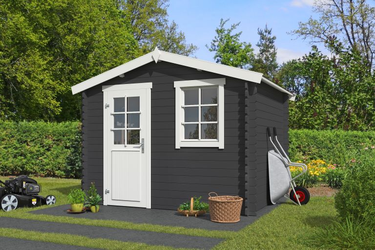 Tuinhuis Nina 275x230 cm Carbongrey-Wit noordeuropees vuren is een compact en stijlvol tuinhuis dat zowel praktisch als modern is. Met een afmeting van 275 bij 230 cm biedt dit model voldoende ruimte voor het opbergen van tuinmeubelen, gereedschap of fietsen, terwijl het weinig ruimte in de tuin inneemt. De combinatie van carbongrey met witte accenten zorgt voor een frisse en eigentijdse uitstraling die in vrijwel iedere tuin past.