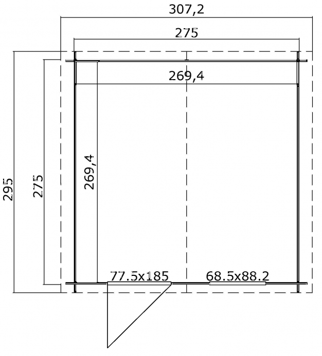 Met een binnenruimte van circa 7,5 m² is Tuinhuis Nina 275x275 cm ideaal voor het overzichtelijk opbergen van verschillende tuinbenodigdheden. Daarnaast kan de ruimte flexibel worden ingericht als hobbyruimte of werkplek. De praktische indeling maakt het eenvoudig om de beschikbare ruimte efficiënt te benutten, ook in kleinere tuinen.