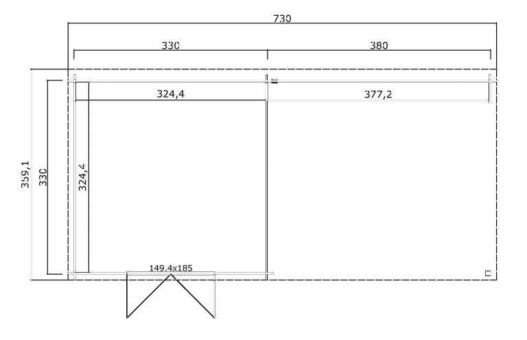 Met een binnenoppervlakte van circa 23,4 m² is Tuinhuis Olenka 710x330 cm zeer geschikt voor het overzichtelijk opbergen van grote en kleine tuinartikelen. Dankzij de royale indeling kan de ruimte flexibel worden ingericht als werkplaats, hobbyruimte of ontspanningsplek, waardoor het tuinhuis multifunctioneel inzetbaar is.