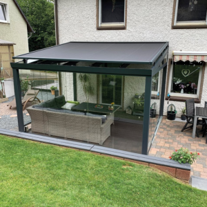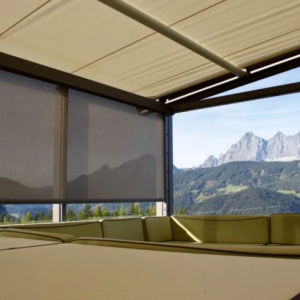 Screens voor terrasoverkappingen zijn ideaal als windvaste zonwering langs de zijkanten van veranda, pergola of overkapping. Ze filteren fel zonlicht en UV-straling, bieden meer privacy en beschermen ook tegen wind, motregen en insecten.