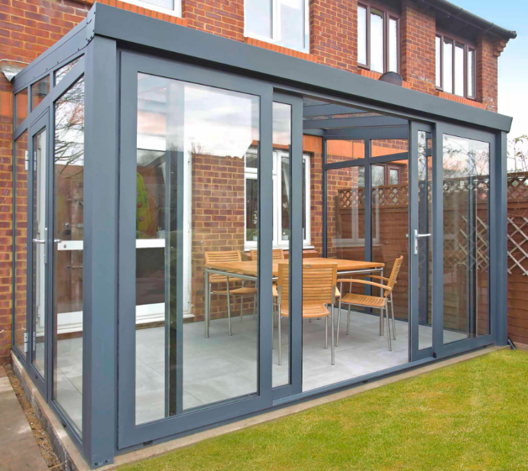 De Tuinkamer Easy met schuifpui maakt het eenvoudig om uw woonkamer te verlengen in de tuin. Deze aluminium tuinkamer is aantrekkelijk geprijsd, volledig dicht en wordt zeer compleet geleverd