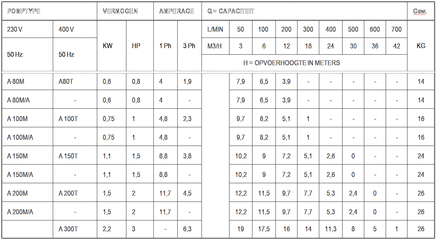 De pomp is vanwege zijn compacte opbouw zeer geschikt voor de scheepvaart, landbouw en industrie. “/A” uitvoering met vlotter.