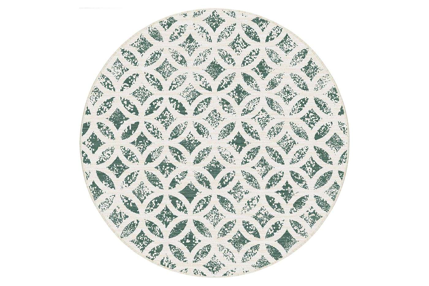 Vloerkleed Portofino is ideaal als buitenkleed. Het kleed heeft een isolerende werking en is aan 2 zijden te gebruiken. Elke zijde heeft een eigen ontwerp, het patroon is exclusief ontworpen voor OrangeVie. De tinten van de Portofino zijn legergroen met wit en creëren het silhouet een gestempelde cirkel met bloemen. Schoonmaken van het kleed is heel eenvoudig en kan buiten met bijvoorbeeld de hogedrukreiniger. Het kleed is echt van oersterke kwaliteit! Naast een grote en kleine rechthoekige variant is het kleed ook beschikbaar in een ronde vorm. Op dit buitenkleed krijg je 2 jaar garantie, de afmetingen zijn 160x230 cm en 200x290 cm.